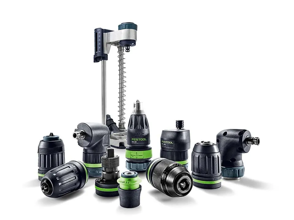 Os acessórios FastFix da Festool oferecem soluções personalizadas para aplicações de perfuração e aparafusamento. Graças à interface FastFix, acoplam-se facilmente à maioria dos berbequins e aparafusadoras de impacto Festool. Assim, um único berbequim ou aparafusadora torna-se numa ferramenta multifuncional, ampliando as suas aplicações e reduzindo a necessidade de ter várias máquinas.