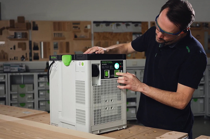 Uma vez que a lixagem grosseira gera uma quantidade particularmente grande de pó, é essencial ligar um Aspirador profissional móvel. Para o pó de madeira, deve ser sempre um Aspirador profissional da classe de pó M.
