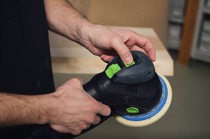 Depois de nivelar os golpes de aplainamento, mude para a lixa P120. Efectue agora mais uma passagem na regulação de lixagem grossa.